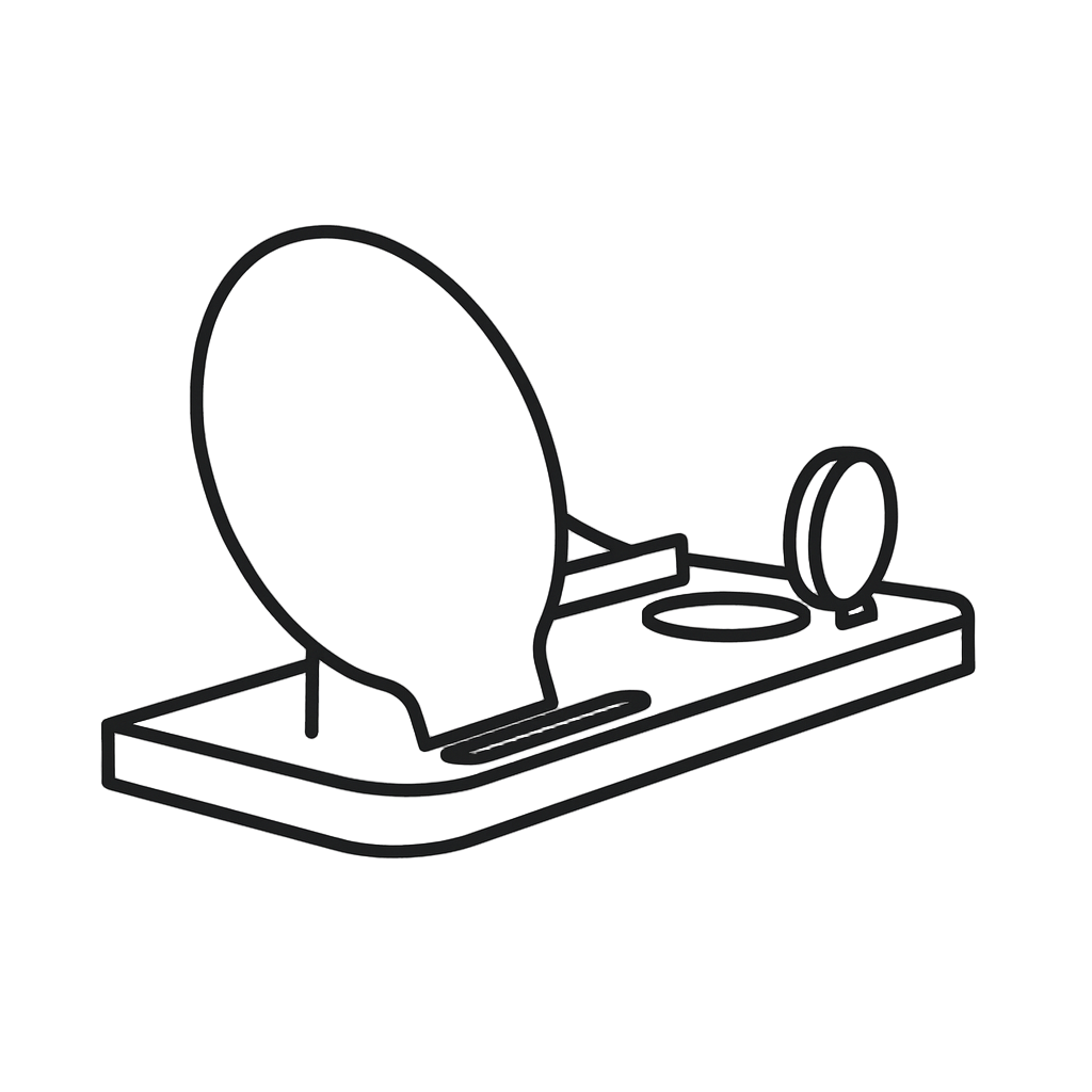 Mit nur 210 × 130 × 22 mm ist TriVolt schlank und platzsparend , perfekt für Schreibtische, Nachttische oder unterwegs.