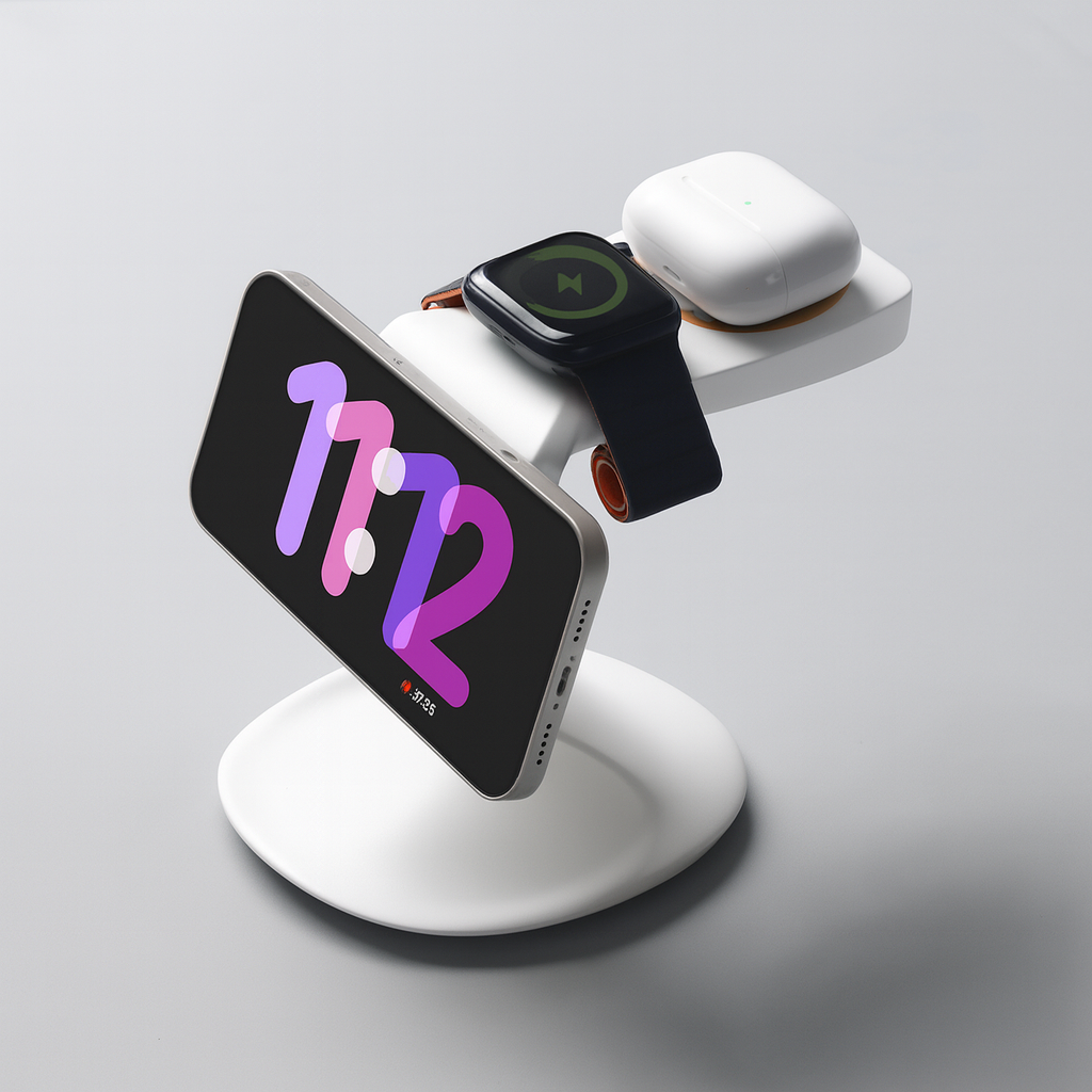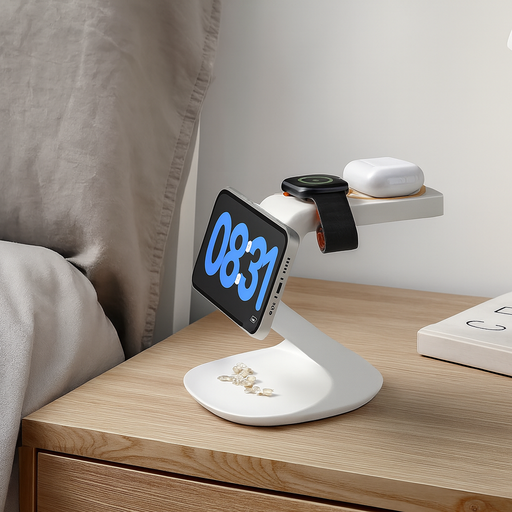 MagDock versorgt Ihr iPhone, Ihre Apple Watch und Ihre AirPods gleichzeitig mit Strom und unterstützt auch andere Qi-fähige Geräte .