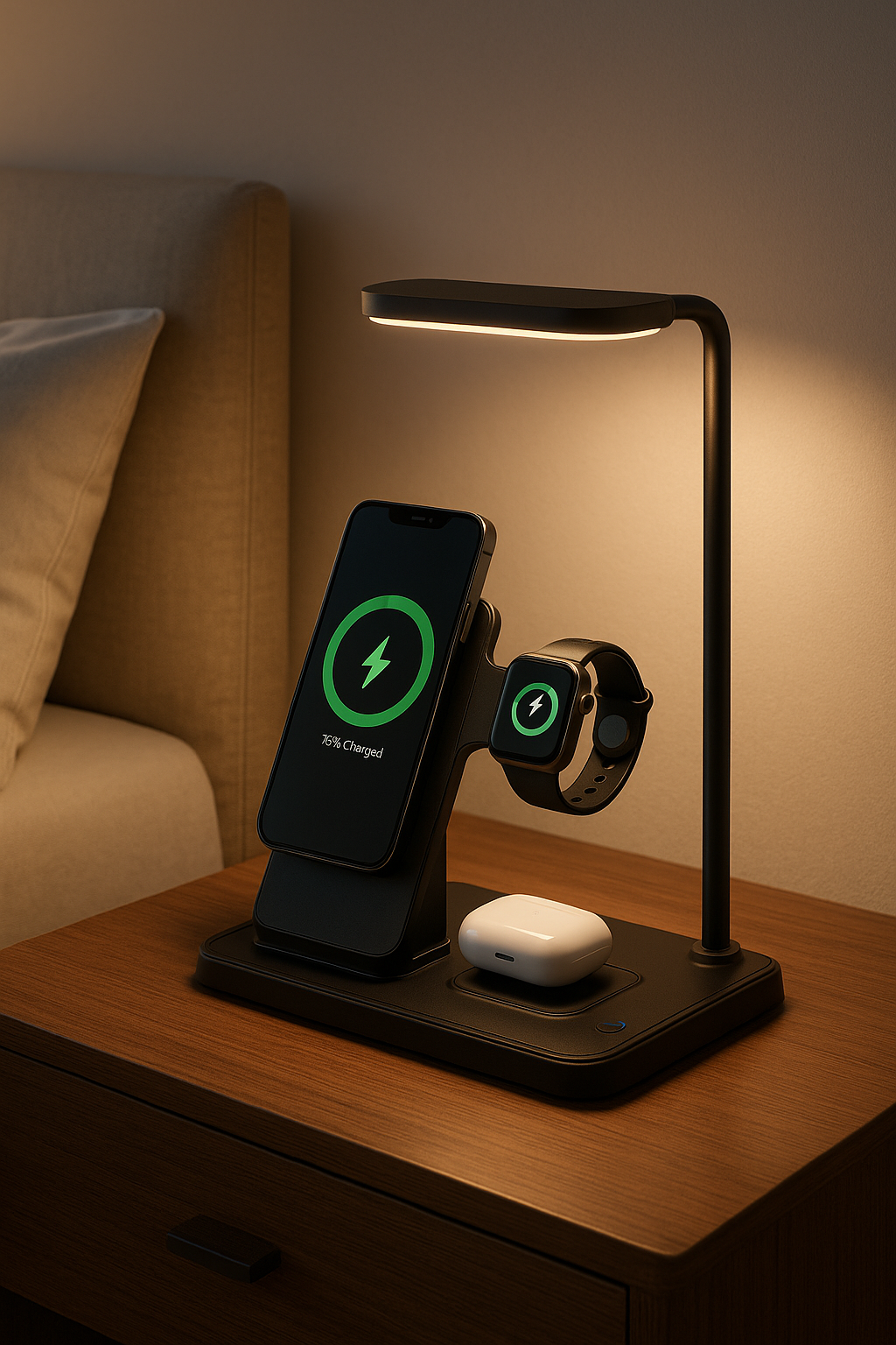 Das Gerät unterstützt QC 3.0-Eingangsstandards (z. B. 9 V/2 A) und verfügt über mehrstufige Sicherheitsvorkehrungen wie Überspannung, Überstrom, Übertemperatur, Kurzschlussschutz und Fremdkörpererkennung. Sowohl die Lampe als auch das kabellose Laden schalten sich automatisch ab, sobald die Geräte vollständig geladen sind.