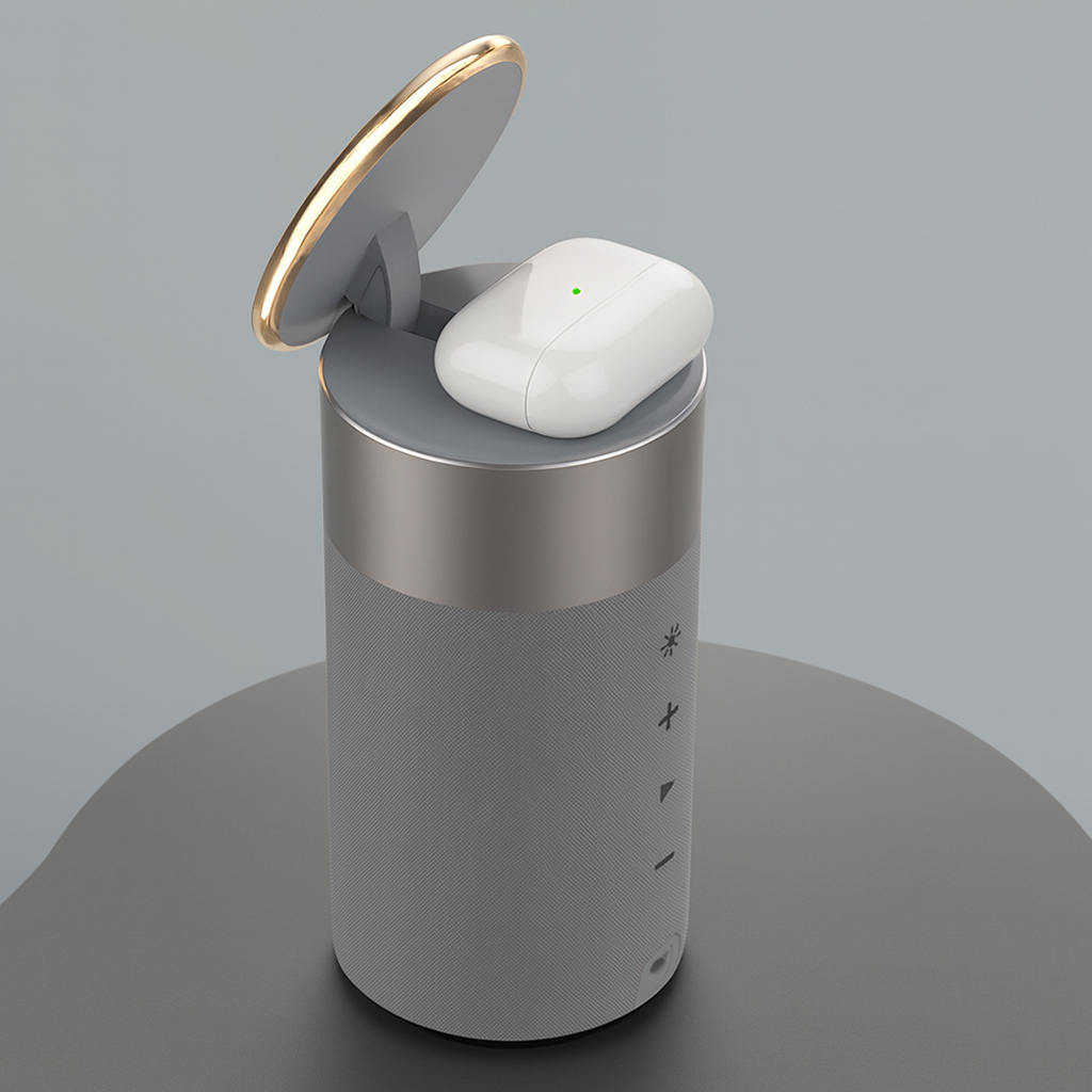 SoundPad is a premium 3-in-1 solution, combining wireless charging, immersive sound, and elegant lighting in one refined design.