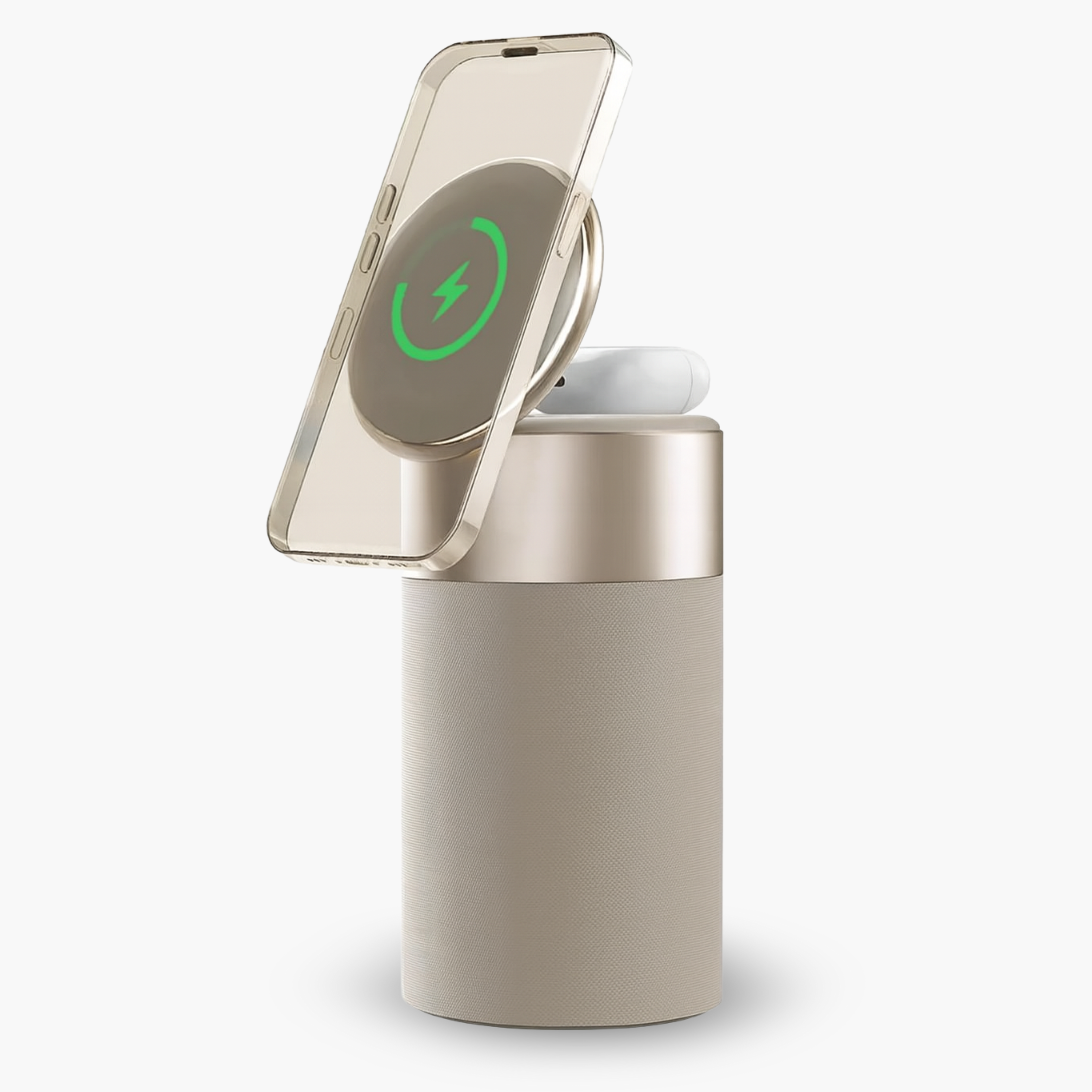 Enjoy premium wireless sound while keeping your iPhone powered. The integrated MagSafe dock snaps your device securely in place, delivering effortless charging as the speaker fills your space with clear, balanced audio — perfect for work, calls, or relaxation