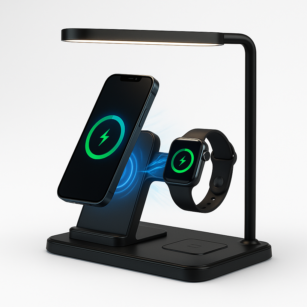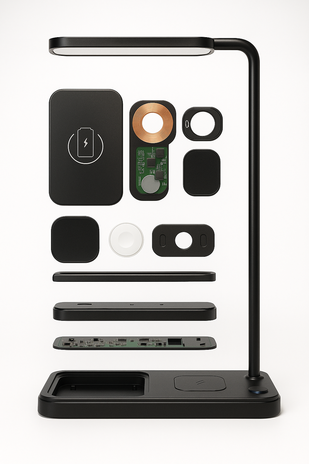 Das Gerät unterstützt QC 3.0-Eingangsstandards (z. B. 9 V/2 A) und verfügt über mehrstufige Sicherheitsvorkehrungen wie Überspannung, Überstrom, Übertemperatur, Kurzschlussschutz und Fremdkörpererkennung. Sowohl die Lampe als auch das kabellose Laden schalten sich automatisch ab, sobald die Geräte vollständig geladen sind.